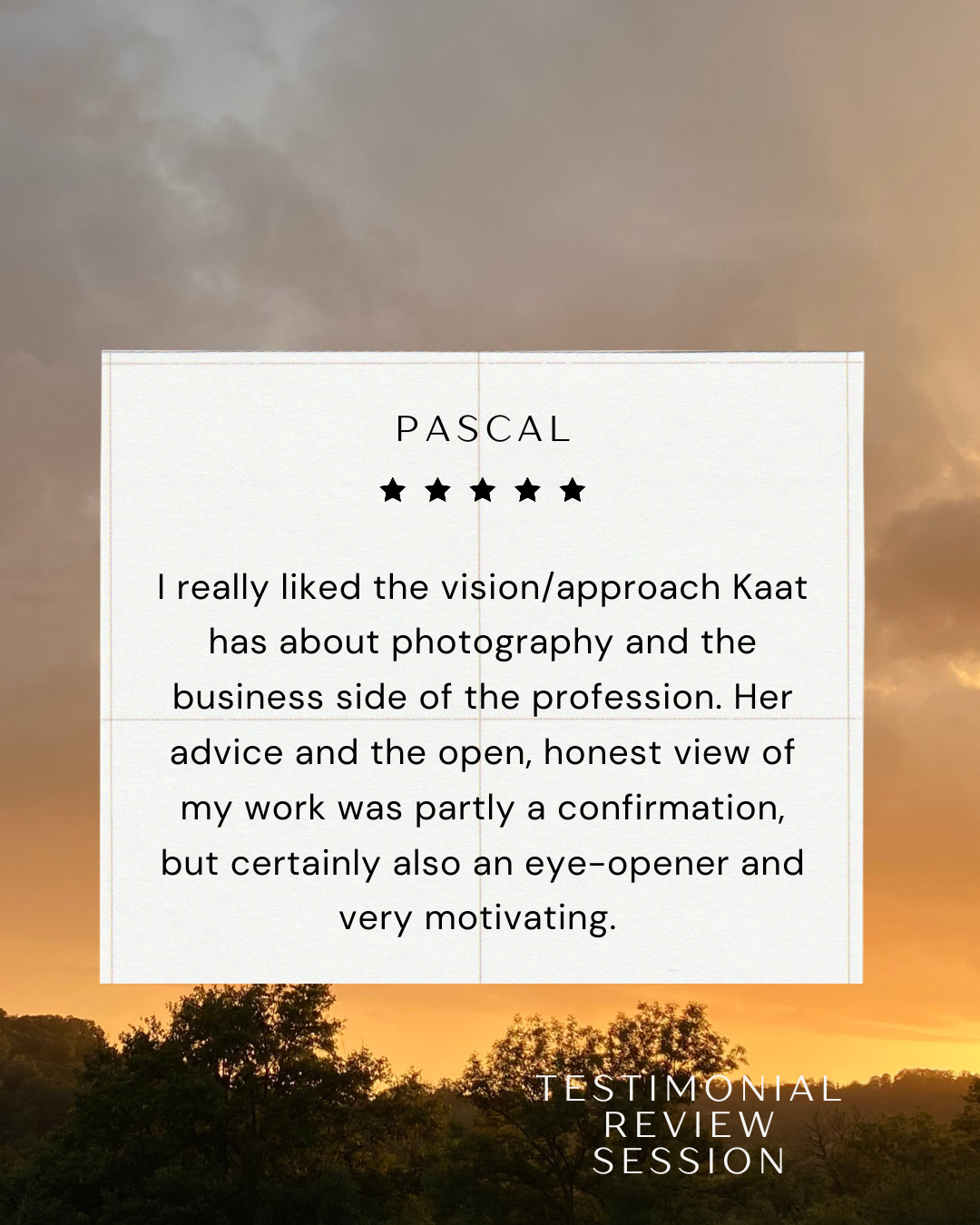 “Kaat knows how to run a business as a photographer, and she shares that knowledge in the training. It has given me several concrete tips and insights.”